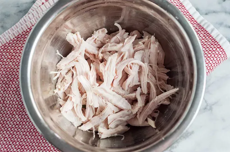 - Xả nước lạnh, xé nhỏ