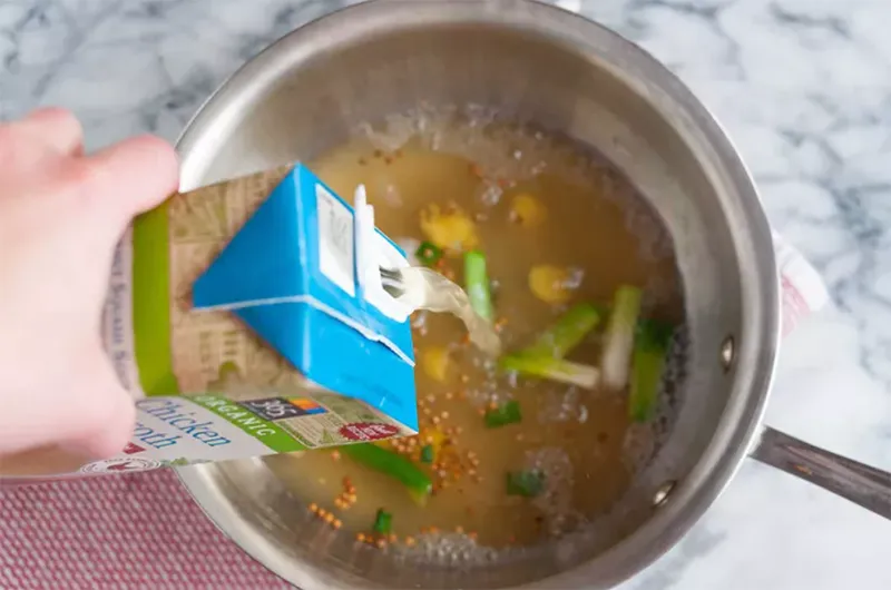 Đầu tiên, nước dùng chính là “linh hồn” của món phở. Thay vì phải ninh xương trong nhiều giờ, bạn có thể sử dụng nước dùng gà đóng hộp làm nền, sau đó tăng hương vị bằng các nguyên liệu như gừng đập dập, hành lá, hạt rau mùi, đinh hương và thêm một chút quế hoặc hoa hồi nếu thích. Cách làm này giúp nước dùng vẫn có mùi thơm đặc trưng, vị ngọt thanh và độ sâu cần thiết mà không tốn quá nhiều thời gian.