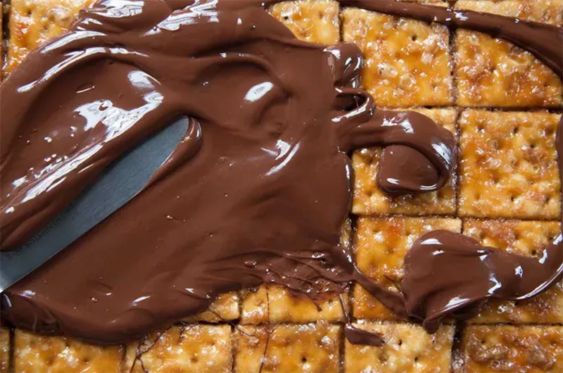 Bánh quy mặn phủ caramel và socola là món ăn giòn, ngon và là món ăn vặt truyền thống không thể thiếu trong ngày lễ giáng sinh. Với món kẹo bánh quy giáng sinh cổ điển này bánh quy được nhúng 2 lần với caramel và sau đó là socola. Kết quả cho ra một món ăn giòn tan, phủ đầy socola, mặn mà khiến bạn gần như không thể dừng lại.