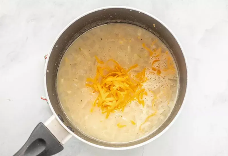 - Cho phô mai cheddar vào, nêm muối tiêu