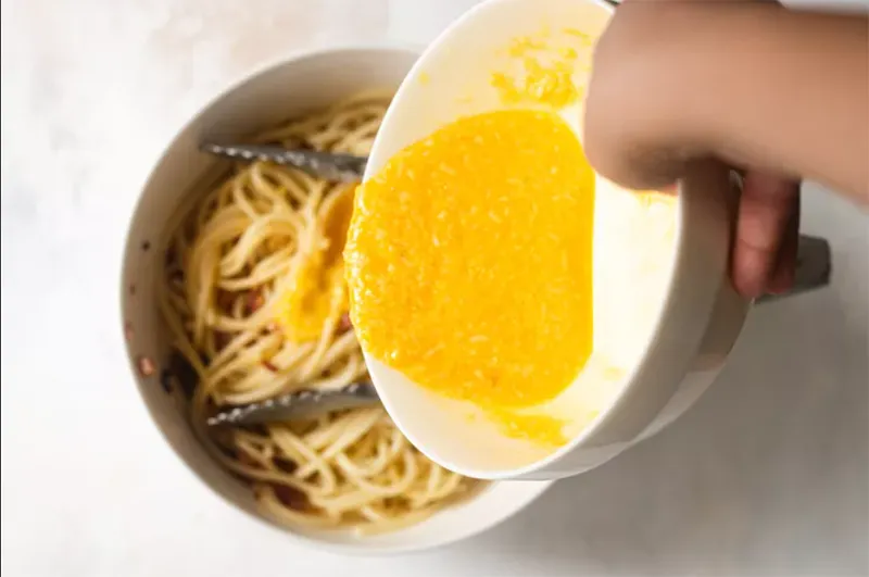 Chìa khóa thành công nằm ở thao tác khuấy trứng thật nhanh vào mì ống đang nóng. Nhiệt độ của mì phải đủ để làm chín trứng và tạo thành lớp sốt sánh mịn, nhưng không quá cao để khiến trứng bị đông lại thành những vón cục không mong muốn. Đừng lo lắng nếu lần đầu thực hiện chưa hoàn hảo, món Carbonara chuẩn vị cần một chút luyện tập.
